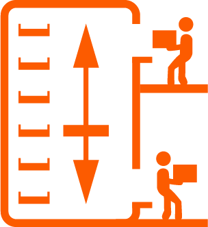 A lift type shelving unit with the horizontal and vertical lift travel.