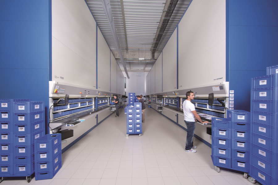 Firma Wiśniowski wyposażyła swój magazyn w blisko pięciometrowy, dwuwieżowy regał automatyczny LogiTower z dwoma oknami dostępowymi i półkami o dwóch różnych wysokościach.