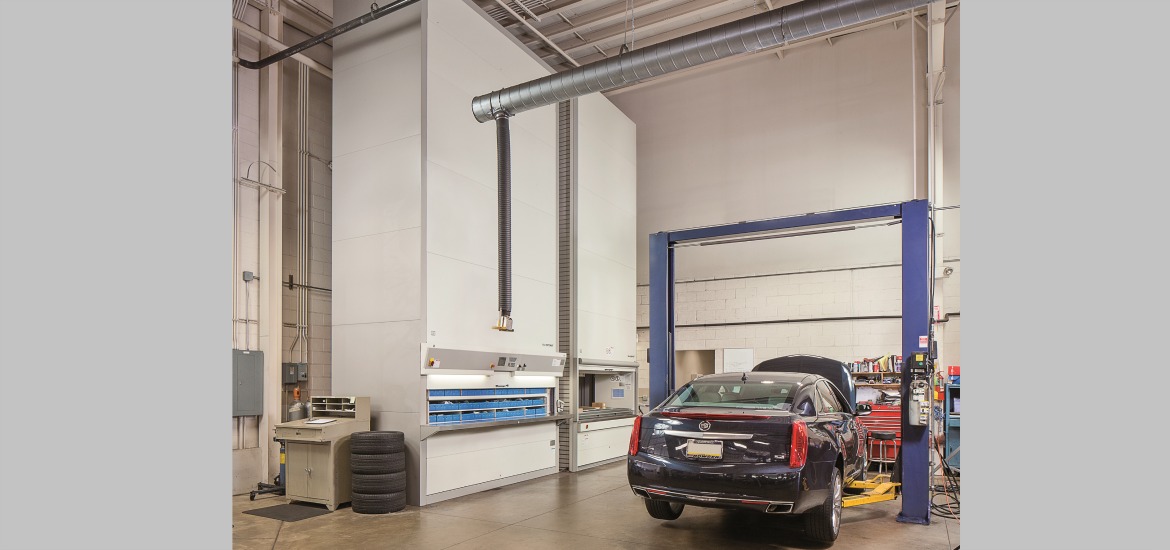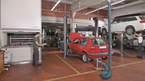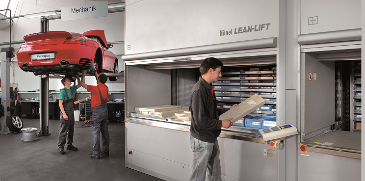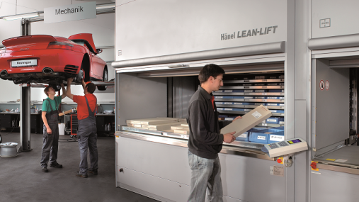 Regały magazynowe LEAN-LIFT i ROTOMAT bardzo często są wykorzystywane jako magazyn narzędzi oraz magazyn części zamiennych. Są one podstawowym rozwiązaniem z zakresu automatyzacji stosowanym w działach utrzymania ruchu. Automatyczne regały LEAN-LIFT typu winda są bardzo często wykorzystywane do przechowywania bardzo dużych i ciężkich elementów, m.in. silników, przekładni lub katalizatorów. W przypadku centr serwisowych kluczowe jest zagwarantowanie krótkiego czasu reakcji na problem klienta, przeprowadzenie szybkiej ekspertyzy samochodu i wykonanie niezwłocznie naprawy pojazdu. Z pomocą przychodzą tutaj automatyczne systemy składowania, które dzięki funkcji kontroli dostępu i kontroli stanów magazynowych pozwalają na posiadanie wiedzy co do liczby i rodzaju posiadanych części zamiennych, narzędzi oraz ich bieżące uzupełnianie.