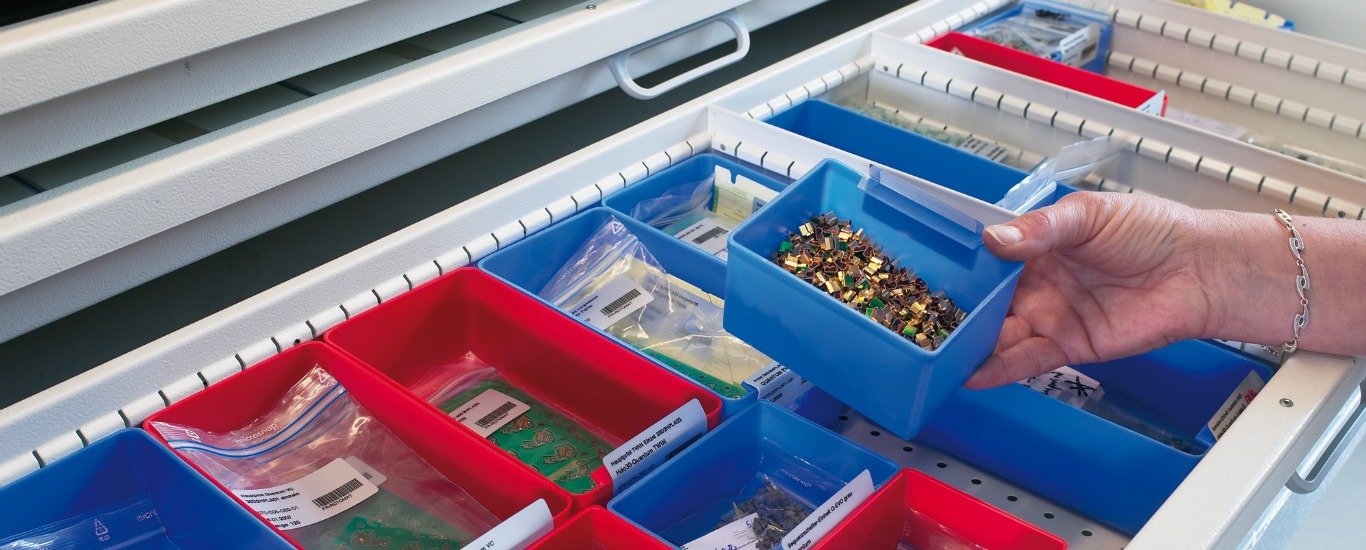 Składowanie komponentów  produkcji do szybkiej kompletacji (ochrona ESD).