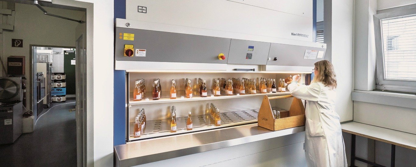 Przechowywanie szkła w regałach karuzelowych Rotomat
