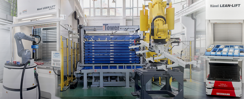 – LogiTowerLoader – do automatyzacji załadunku blach do wycinarek, dostępny w wersjach Compact, Basic, Advance i Complex – w pełni zrobotyzowane stanowiska cięcia blach